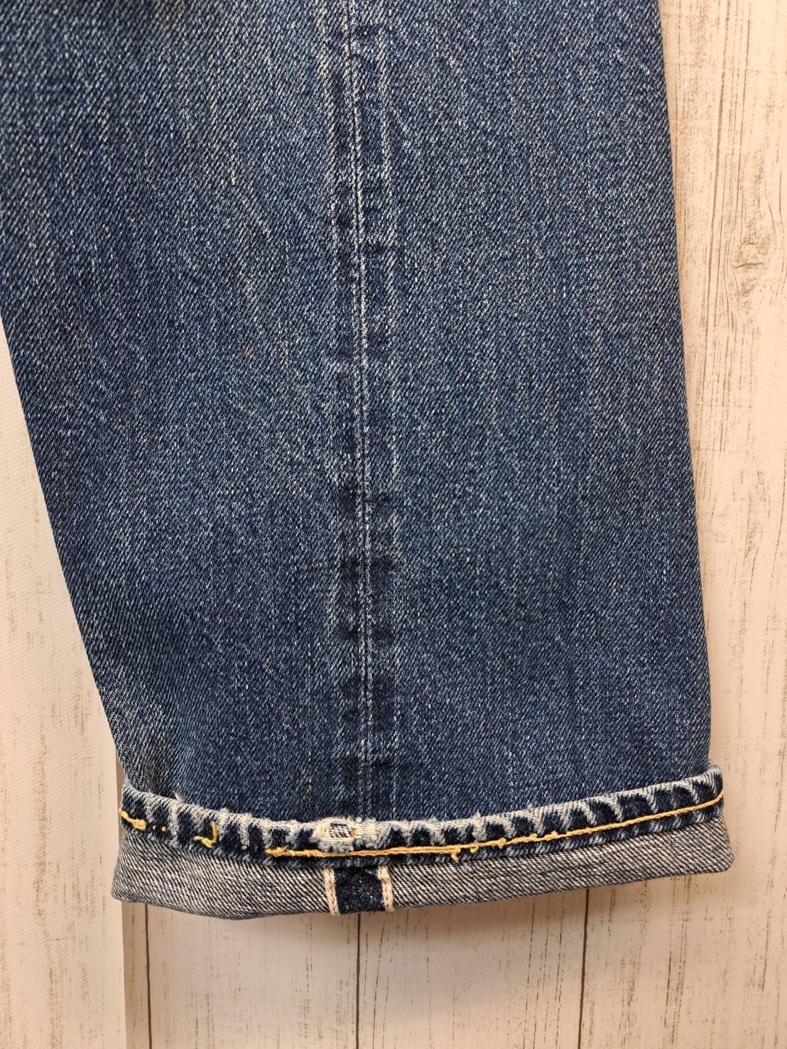 ヒゲ落ち、ハチノスが綺麗に出ているサンプル級の色落ちをした個体です。紙パッチ、内タグは欠損していますが、バックポケットの赤タグや生地感から、林氏が在籍してた時代のドゥニームで間違いないと思います。(ORIZONTI期 SHINS期)