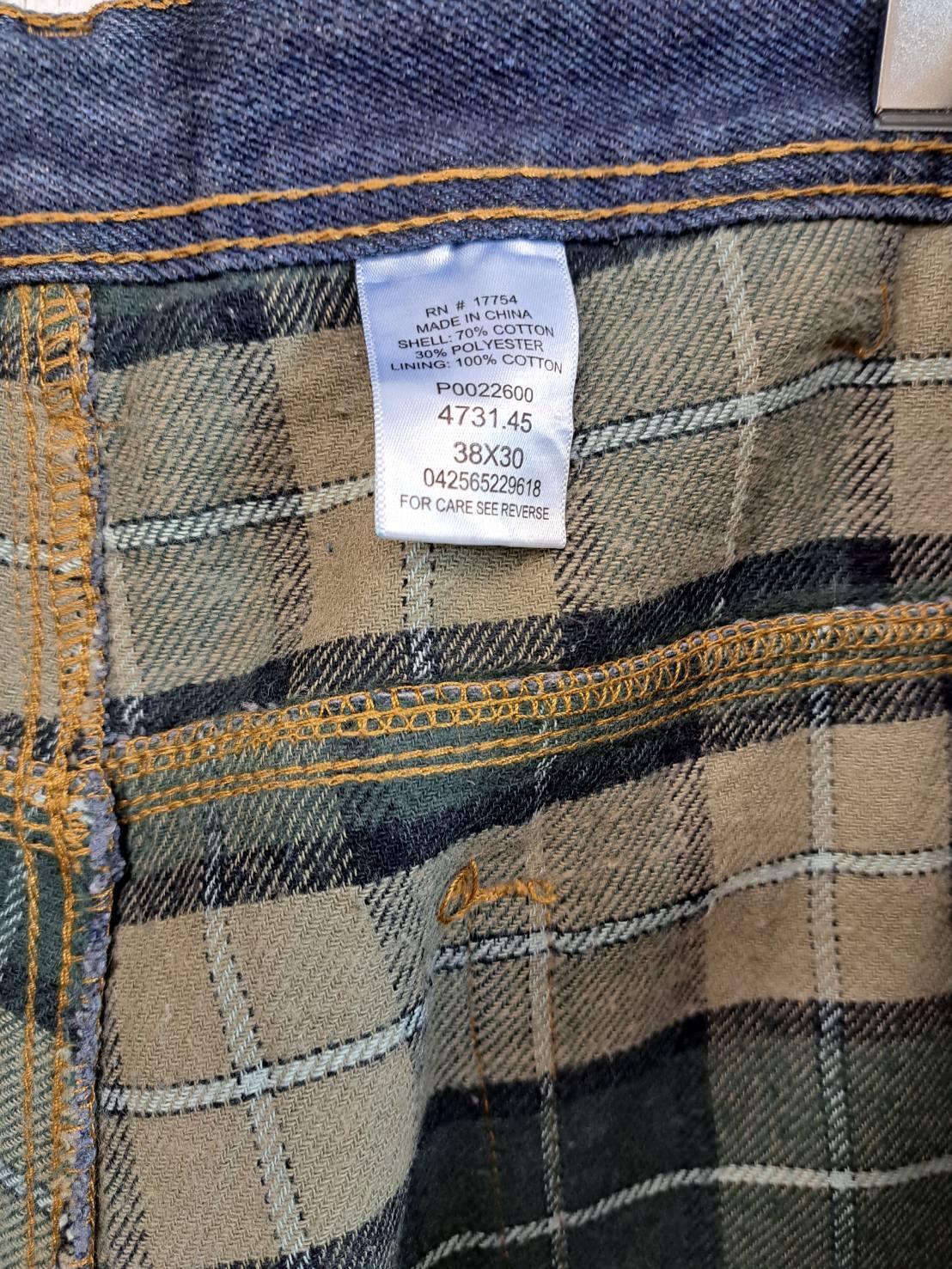 裏地が迷彩のフリース起毛で保温性のある、お洒落なデニムパンツです。